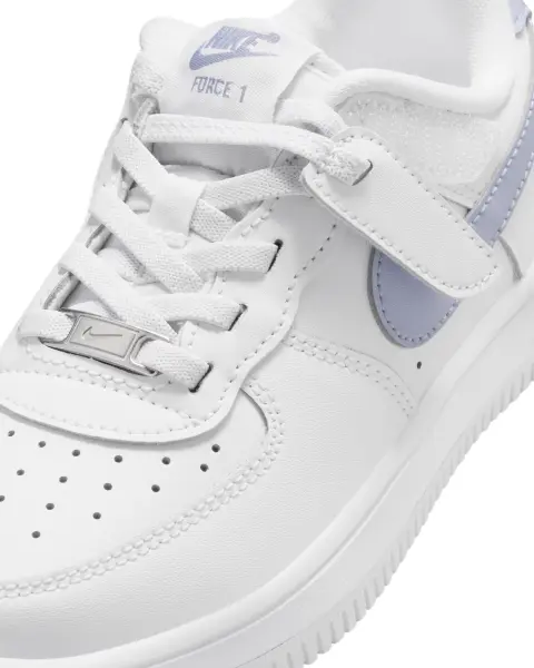 Enfilez vos chaussures en un clin d'œil sans vous battre avec vos lacets. Les œillets supérieurs de ces baskets sont reliés par des bandes auto-agrippantes, permettant aux enfants d'ajuster rapidement leur pied tout en profitant du style AF-1 classique.
