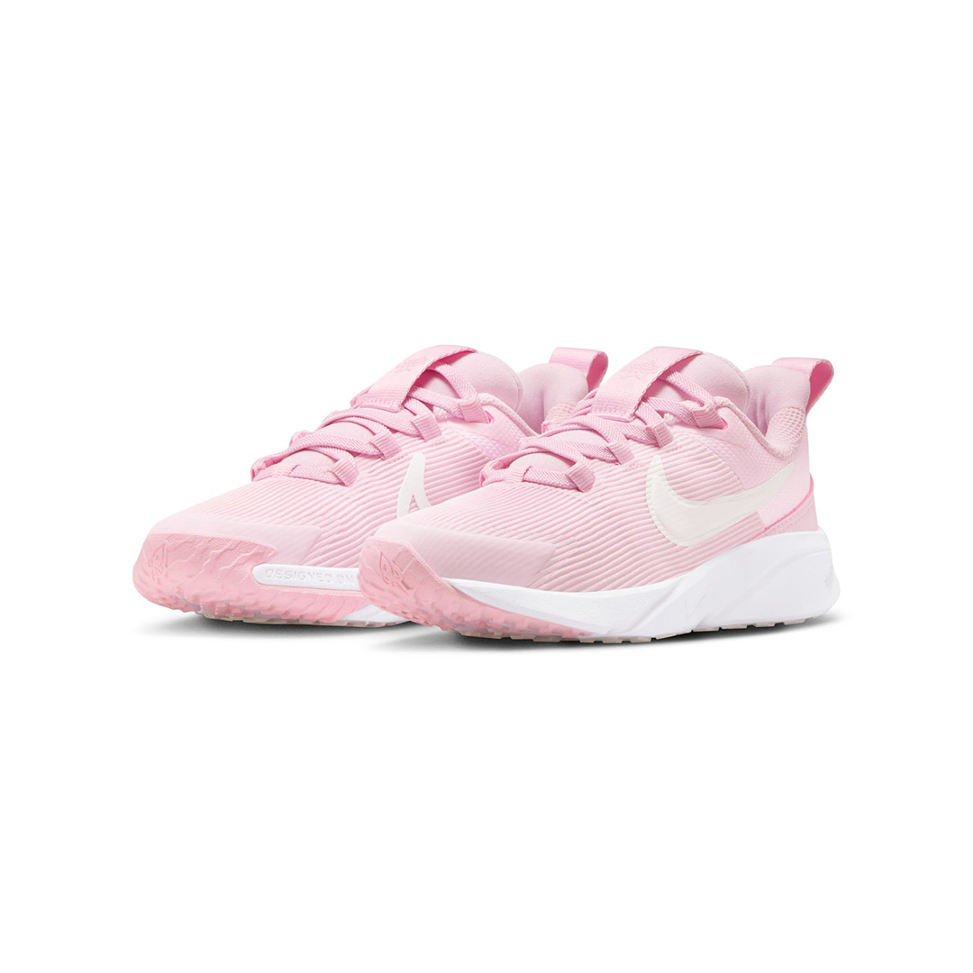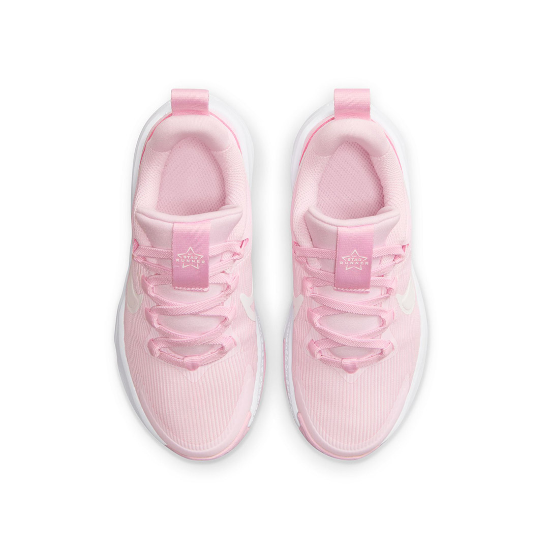 Plus vite dehors avec la Star Runner. Les boucles sur la languette et le talon permettent d'ouvrir la chaussure en grand et de l'enfiler facilement. L'amorti souple dans la semelle intermédiaire apporte encore plus de rebond et de confort pour jouer sans s'arrêter. La semelle accroche au bitume, à l'herbe et au gravier, et la pointe enveloppée de caoutchouc est plus robuste. Comme ça, les enfants iront encore plus loin avec la même paire de Star Runner.